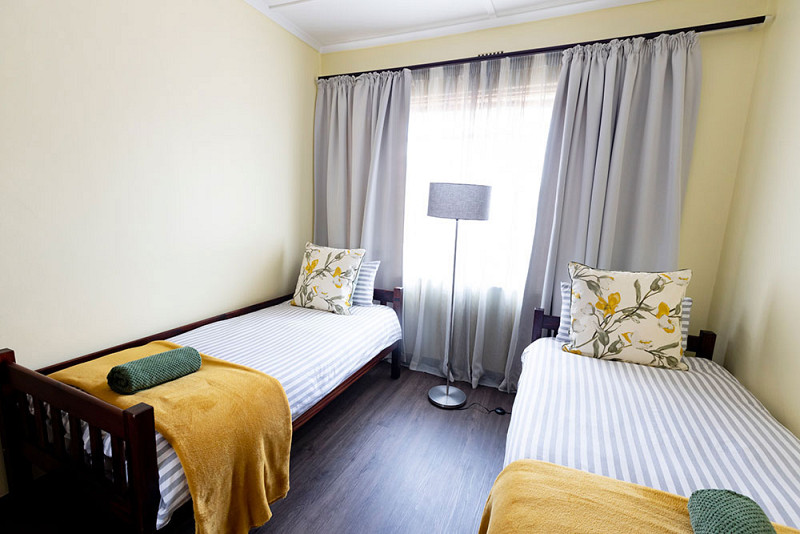 Plantation House has 3 bedrooms, 2 bathrooms, a large kitchen that is stocked with 2 fridges, dishwasher, washing machine and dryer, large TV lounge, Study and a Small Lounge that has a sleeper couch. The main bedroom has a king-size bed and is air-conditioned, bedroom two – queen-size bed, and bedroom three – a bunkbed that can be easily dismantled into two singles. In total, Plantation House can sleep up to 8 guests. A small patio with a gas braai opens onto the communal back garden.